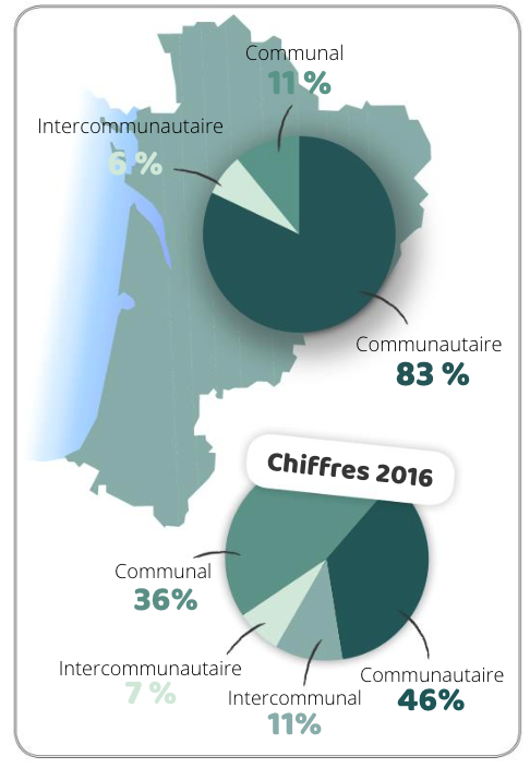 En 2016, la loi NOTRe est en train de changer le paysage touristique. Les 3 fédérations avaient besoin de connaître leur nouveau réseau afin d’être au plus proche de ses besoins. La radioscopie du réseau des offices de tourisme et territoires permet d’établir le constat d’une région Nouvelle-Aquitaine en avance sur l’organisation touristique des territoires, avec une part déjà très importante d’offices de tourisme intercommunautaires et communautaires, avec toutefois un chantier restant pour les 43% de structures actuellement à échelle communale ou intercommunale, dont la plupart se situe sur la frange littorale.