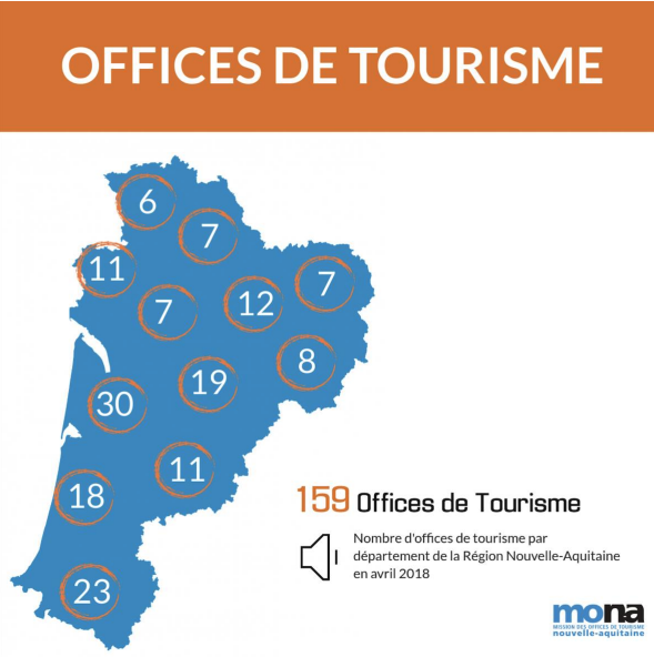 De nombreux offices de tourisme nouvellement créés ou nouvellement fusionnés s’engagent désormais dans une période de construction ou de consolidation. La carte des offices de tourisme de Nouvelle-Aquitaine comporte en avril 2018, 159 offices de tourisme, répartis sur 153 EPCI.