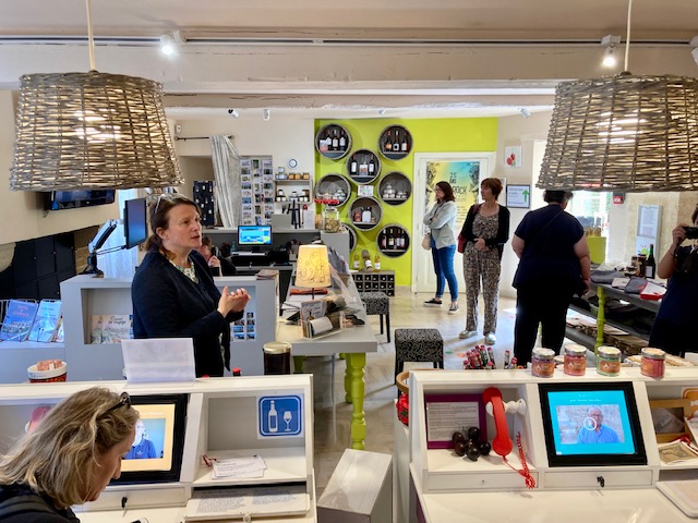 Après un passage dans la boutique de produits locaux, située en fin de parcours, on débouche sur le patio. « Une réflexion est en cours pour en faire un véritable lieu de vie, avec des animations récurrentes pour les habitants et la possibilité de consommer des boissons achetées à la boutique. » L’Office de tourisme du Val de Garonne reçoit aujourd’hui 40 000 visiteurs, dont les trois-quarts sont des locaux. Si en dix ans des remaniements ont été nécessaires, au niveau de la signalétique et des contenus, le dispositif perdure et les touristes sont toujours séduits, bien que moins impressionnés par les outils numériques. Longtemps vu comme précurseur, l’Office de tourisme cherche aujourd’hui une suite à donner à cette « aventure humaine extraordinaire ».