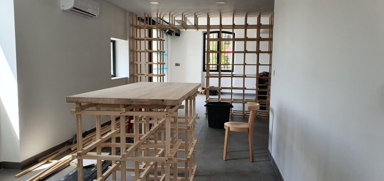 Car le temps d’un projet est souvent long. L’aménagement intérieur du Point Com a été confié à Katalpa, une entreprise spécialisée dans la transformation des espaces en lieux de vie, alliant respect de l’environnement et savoir-faire locaux, avec le concours d’une coopérative locale de menuisiers. Une grande attention a ainsi été portée au choix des matériaux et du mobilier, en privilégiant le réemploi et le 100% local. Au-delà de l’aménagement, ce qui fait le lieu est surtout l’humain ! Une quatrième personne a été recrutée pour prêter main forte à l’équipe permanente, avec la mission d’animer le réseau. La construction du lien avec l’habitant doit s’appuyer sur ce nouveau lieu de vie, où il sera désormais possible de dispenser un conseil complet et de qualité.