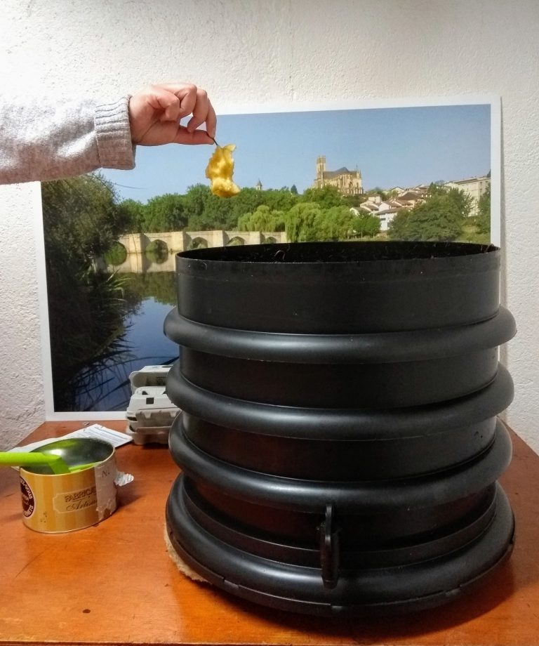 Durant l’année 2019, Chloé constate la masse de déchets produite à l’Office de tourisme en travaillant mais aussi et surtout en mangeant sur place : papiers, cartons, emballages en tout genre, etc. L’idée lui vient alors d’aller plus loin que le simple tri et de réduire les déchets tout en puisant dans l’âme de jardinier de l’équipe et en transformant ce qu’ils jetaient d’habitude pour produire un compost made in Destination Limoges pour les potagers, jardinières etc. L’idée du lombricomposteur est alors née !