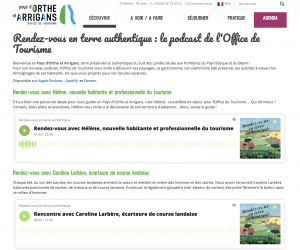Les intervenants de ces podcasts sont des acteurs du Pays d’Orthe et Arrigans. On retrouve tant les professionnels du tourisme que les producteurs locaux. La voix est donnée à tout le monde. L’Office de tourisme du Pays d’Orthe et Arrigans nous donne la possibilité de nous immerger dans l’environnement sonore du territoire. Dans ces interviews, nous pouvons entendre les bruits de l’environnement naturel de nos professionnels interrogés. Cette imprégnation nous donne le sentiment de faire partie du paysage et notamment faire ressortir l’idée d’authenticité.