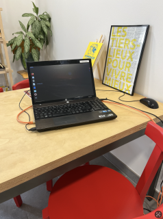 C’est ainsi que le vieil ordinateur recyclé pour le public a été entièrement réinstallé avec l’aide d’un habitant pour être équipé d’un système d’exploitation open source nommé Linux (Ubuntu). Certes, le graphisme est un peu différent, les habitudes ne sont pas forcément les mêmes (par exemple le menu « démarrer » s’appelle ici « activité ») mais le fonctionnement reste exactement le même, et au final, les utilisateurs d’abord interloqués, finissent par rapidement s’habituer au changement.