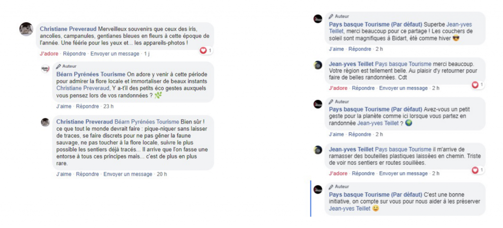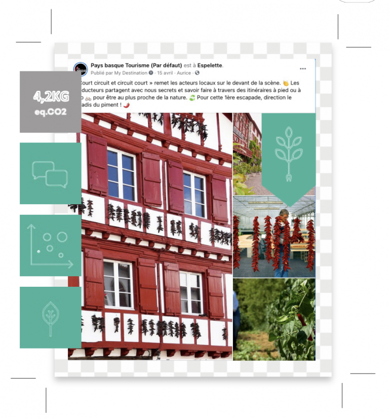 En évitant les sujets controversés et en privilégiant les activités respectueuses, les partenaires labellisés. Pour cela un travail est notamment fait avec le service de l’observatoire pour faire passer le bon message, au bon moment en étalant les flux et par la même occasion éviter de parler de certains lieux pour protéger les sites sensibles. Par exemple, le post suivant est un post engagé car il valorise un produit et un savoir-faire local (le piment d’Espelette) et favorise la visite d’un producteur. En revanche il a un poids important car le post a eu une bonne visibilité donc un impact important !