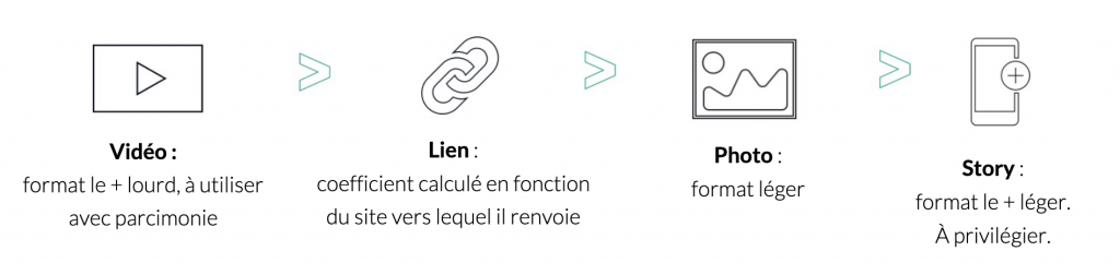 Des écogestes digitaux peuvent ainsi être identifiés : le premier est de réduire son rythme de publication, d’éviter les formats vidéos et les liens ou encore de privilégier le format des stories.