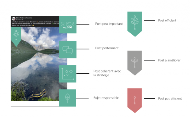 Ainsi pour chaque territoire pilote, dont celui de l’AaDT, a été analysée la pollution générée en équivalent kg CO2, les performances social media et touristique ainsi que le niveau d’engagement du sujet traité pour juger de l’efficience des prises de paroles digitales. Tous ces éléments combinés permettent ainsi de calculer l’impact d’une action digitale.