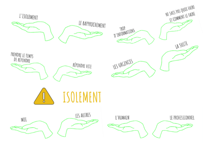 Les échanges que nous menons depuis plusieurs années autour de la Qualité de Vie au Travail, notamment dans le cadre du projet Entract ont mis en avant l’isolement auquel les managers doivent faire face au quotidien. Cet isolement n’est d’ailleurs pas propre aux seuls managers. Tous les salariés peuvent ressentir toutes formes de dualité comme l’illustre l’image ci-après.