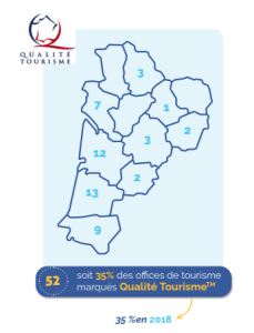 En 2021, sur 149 Offices de Tourisme, 52 étaient marqués Qualité Tourisme. Retrouvez la liste détaillée des offices de tourisme marqués dans l’annuaire dédié.