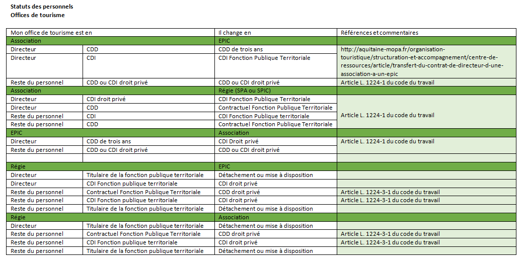 Voir le tableau récapitulatif du droit applicable au transfert de personnel