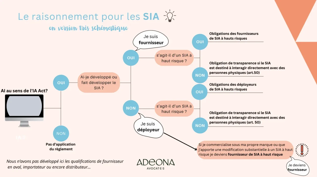 - Savoir si on on parle bien d’intelligence artificielle au sens du règlement européen IA Act ? quel système d’IA j’utilise ?