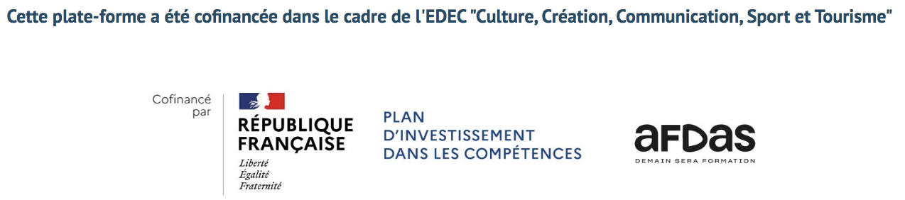 Pour rappel, cet outil a été créé et financé dans le cadre d’un EDEC (engagement pour le développement de l’emploi et des compétences), financé par la DGEFP et par l’OPCO AFDAS. Cela nous permet aujourd’hui de vous proposer un outil totalement gratuit et sur lequel nous comptons continuer à développer des fonctionnalités.