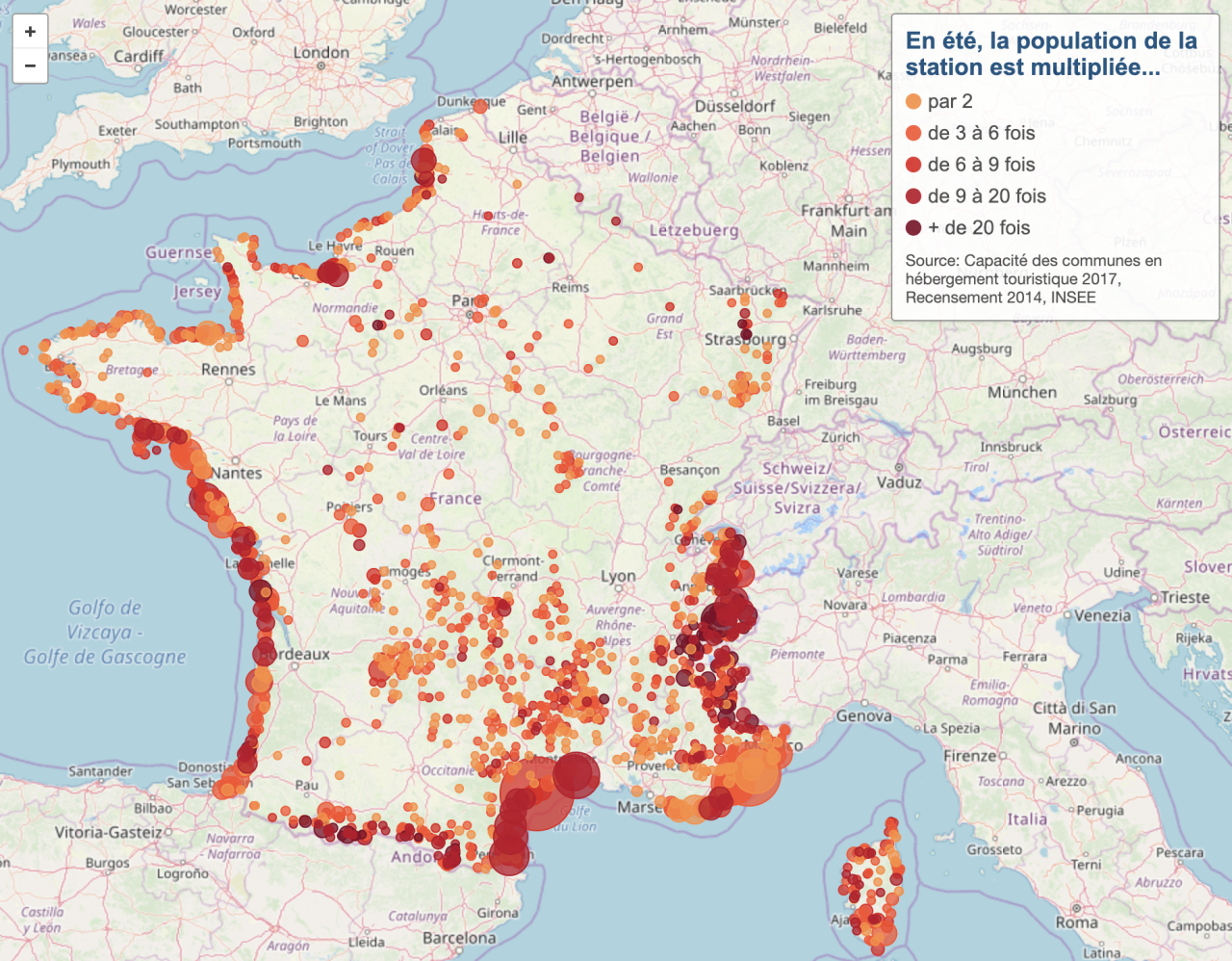 - taux de fonction touristique (capacité d’accueil en lits touristiques / nombre d’habitants)