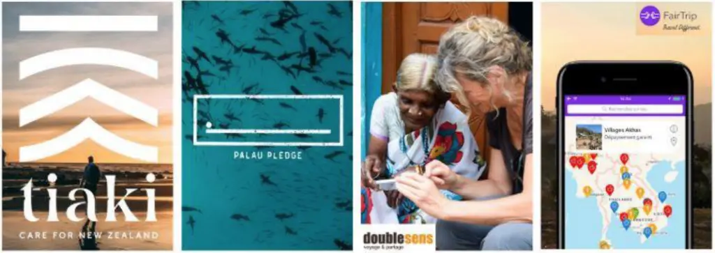 Les start-up aussi tentent de se démarquer afin d’offrir des solutions de voyages alternatives et responsables. Par exemple, l’application Fairtrip, un guide de voyage gratuit et collaboratif qui référence des établissements éthiques et équitables (restaurants, hébergements, boutiques, structures associatives etc.) dans le monde entier. Ou encore Busity, une application collaborative qui permet aux visiteurs d’explorer une ville par son réseau public de bus, sans guide, grâce à des centaines d’anecdotes audio rédigées et racontées par des habitants connaisseurs.